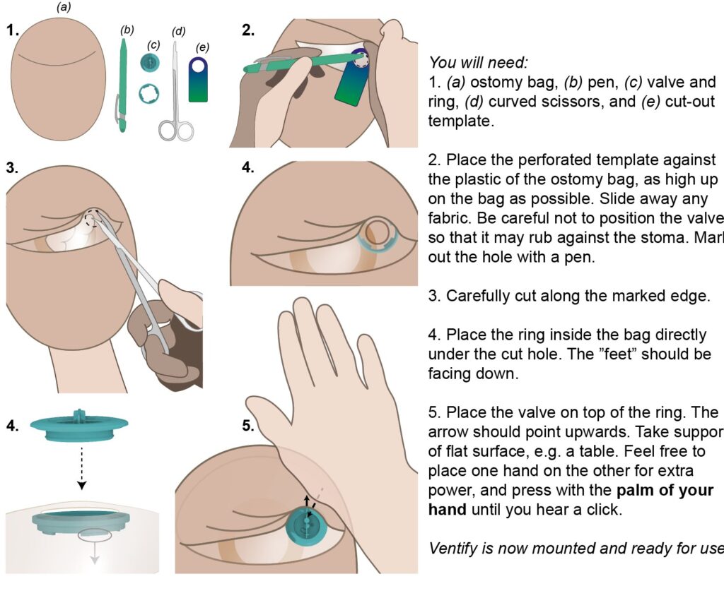 All you need to mount Ventify is a Ventify package containing a valve, a ring and a cutout template, as well as a pen and scissors.